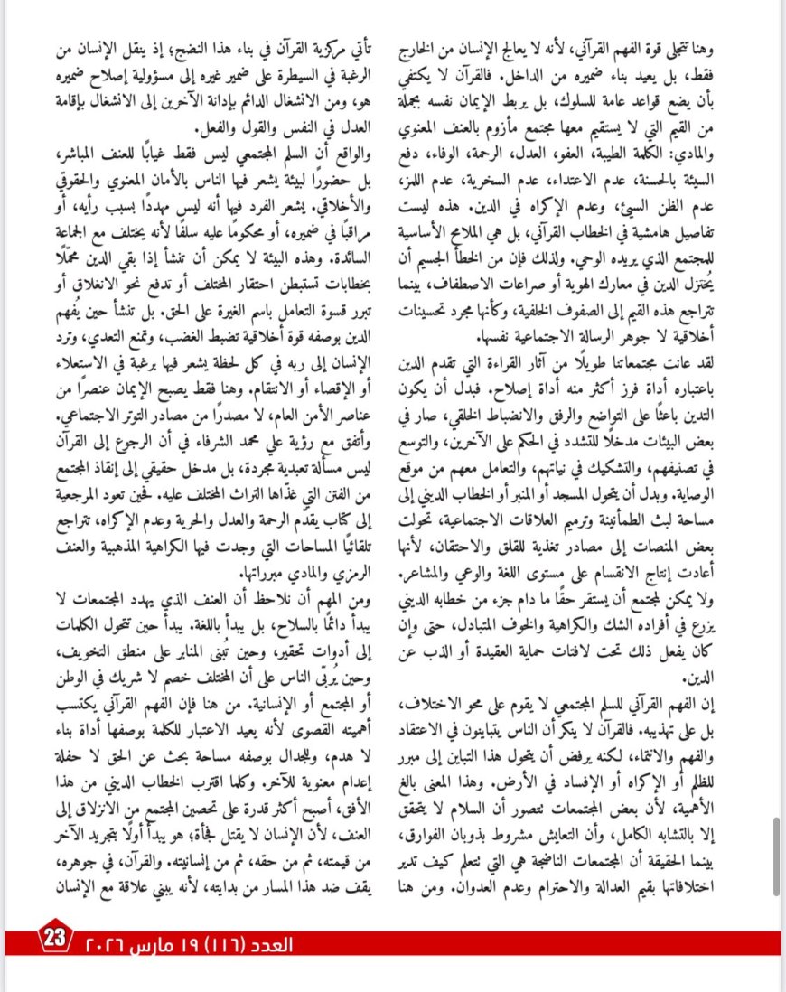 ثم يذهب مقال «السِّلم المجتمعي هو ثمرة الفهم القرآني»