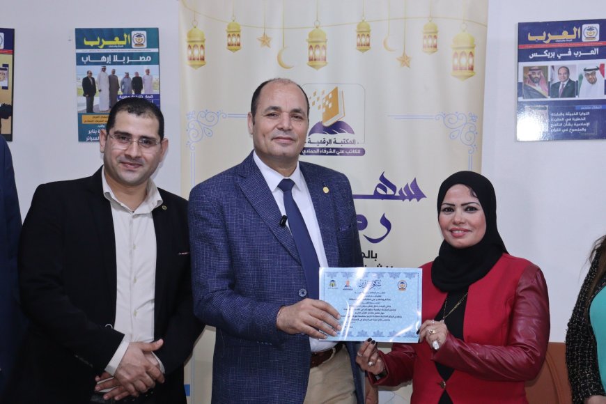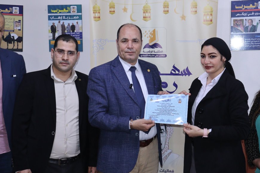 كرم مسؤولو مركز العرب للأبحاث والدراسات؛ محمد فتحي الشريف رئيس المركز، والدكتورة دينا محسن مدير المركز، وعبد الغني دياب رئيس تحرير المركز، فريق عمل "المكتبة الرقمية للشرفاء الحمادي"، وذلك لجهودهم المتميزة خلال شهر رمضان والتي عقدت خلالها سبع ندوات فكرية استضافت عدداً كبيراً من الباحثين والسياسيين والمفكرين، منهم الدكتور أحمد ترك رئيس اللجنة الدينية بمجلس الشيوخ المصري، والصحفي رضا سلام، والصحفي محمد الجوهري، والأستاذ الدكتور عبد الراضي رضوان، عضو مؤسسة رسالة السلام، والكاتب هشام النجار عضو مؤسسة رسالة السلام، والباحث السوري أحمد شيخو، ونخبة من القامات الوطنية والثقافية.