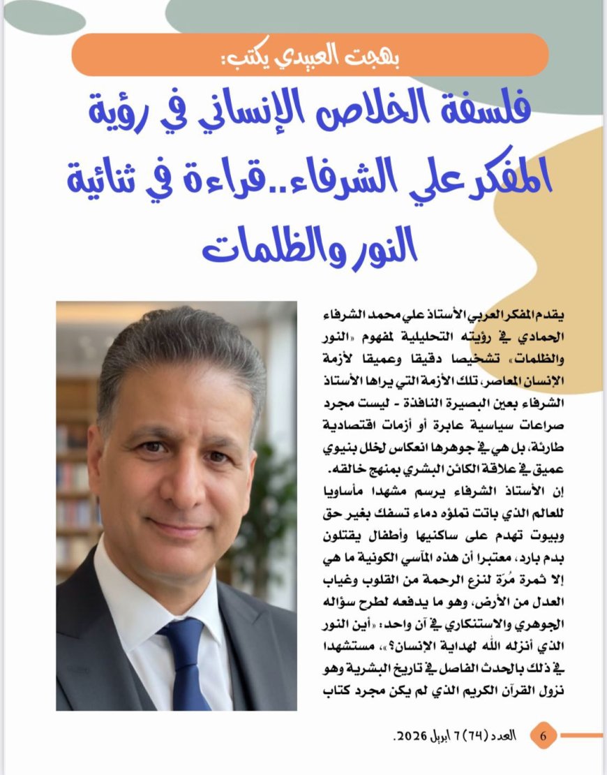 -بهجت العبيدي يكتب: فلسفة الخلاص الإنساني فى رؤية المفكر على الشرفاء..قراءة في ثنائية النور والظلمات