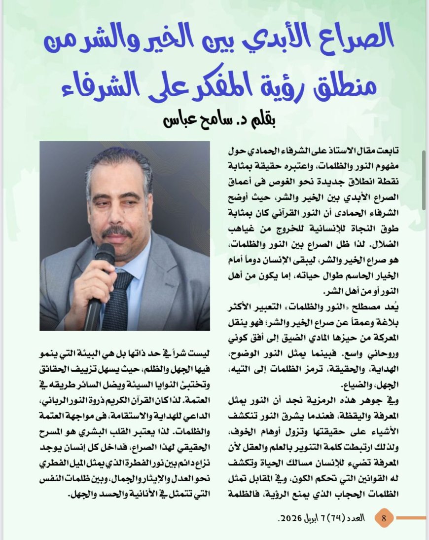 -الصراع الأبدى بين الخير والشر من منطلق رؤية المفكر على الشرفاء