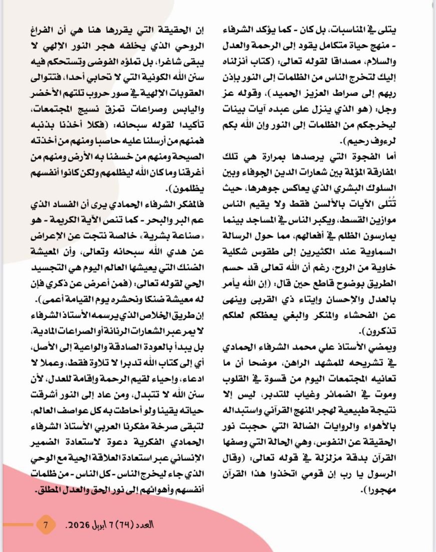 على محمد الشرفاء الحمادى يقدم قراءة تحليلية فى مفهوم النور والظلمات