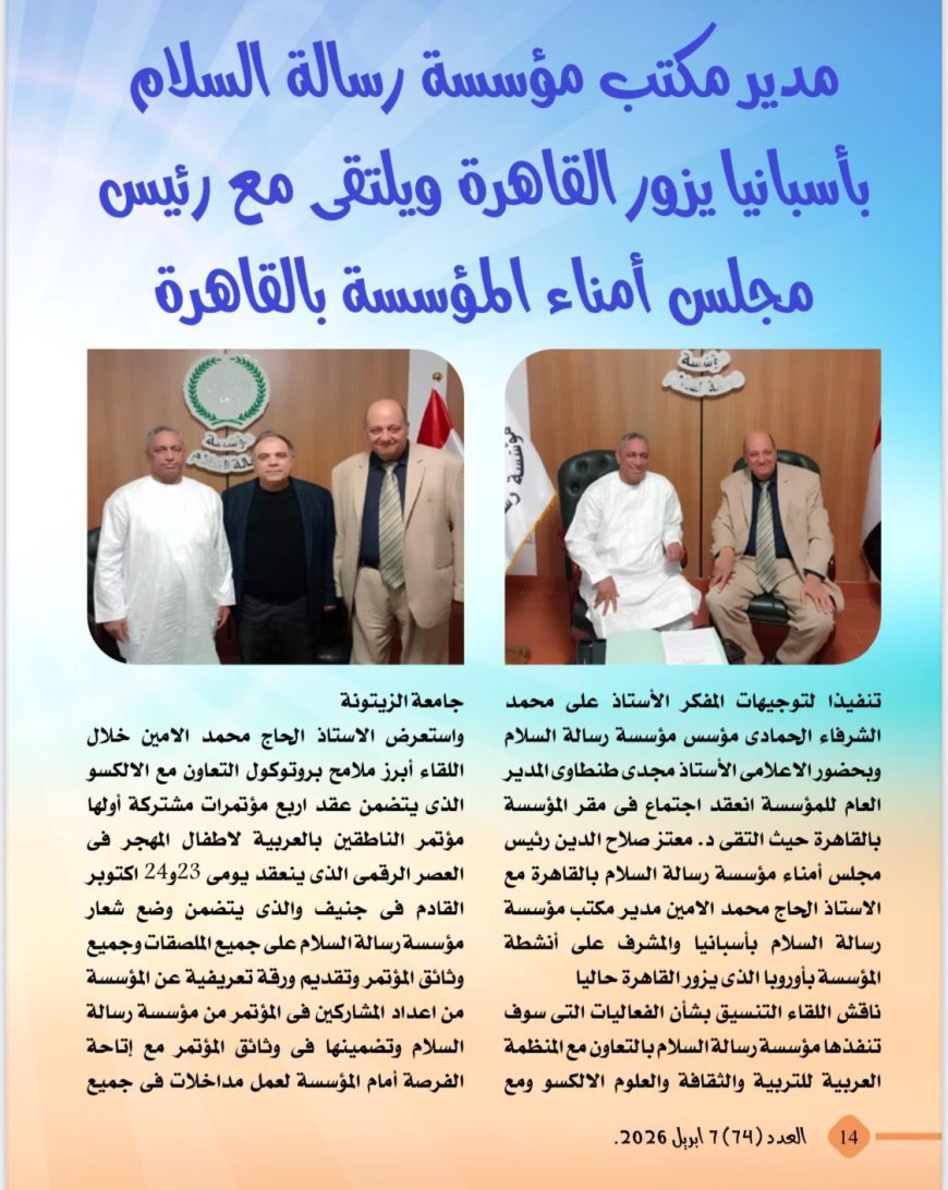 -مدير مكتب مؤسسة رسالة السلام بأسبانيا يزور القاهرة ويلتقى مع رئيس مجلس أمناء المؤسسة بالقاهرة