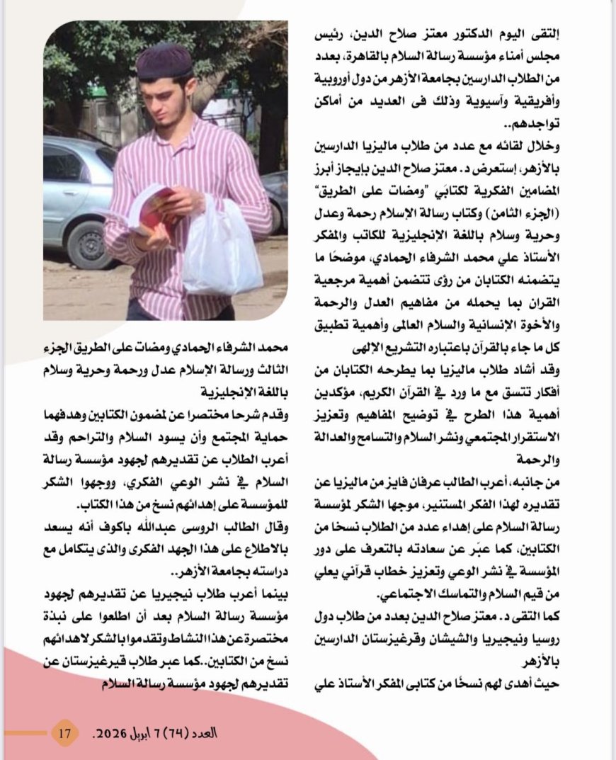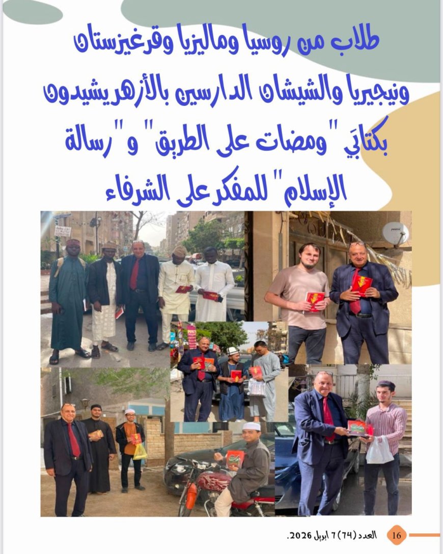 -طلاب من روسيا وماليزيا وقرغيزستان ونيجيريا والشيشان الدارسين بالأزهر يشيدون بكتابى ومضات على الطريق ..ورسالة الإسلام للمفكر على الشرفاء