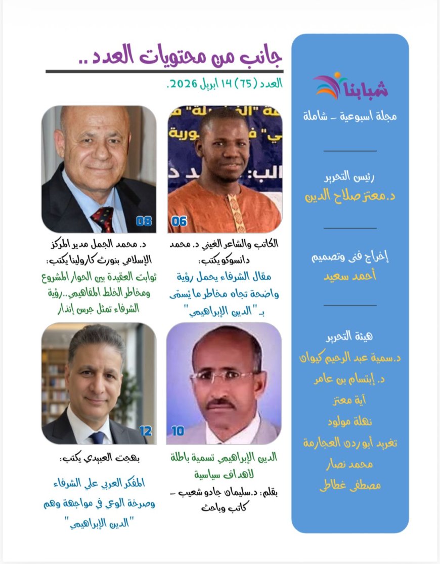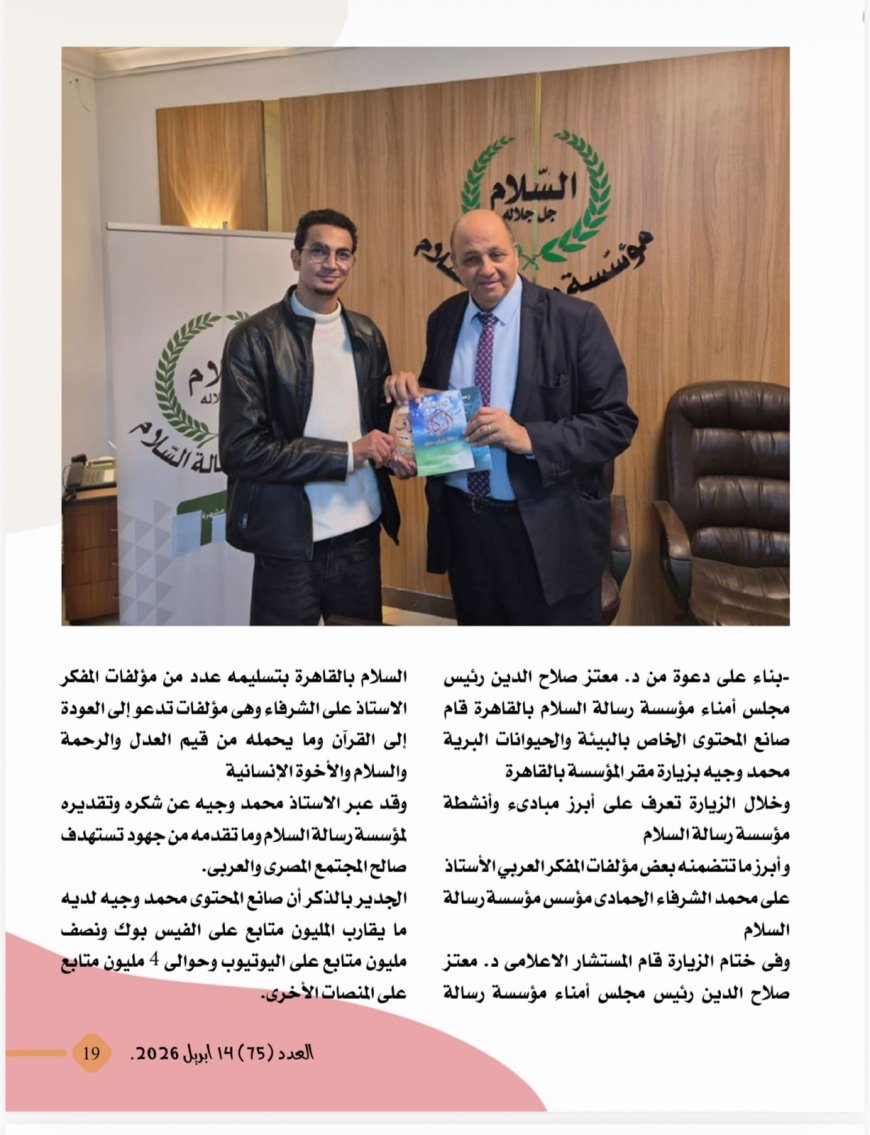 صدر اليوم الثلاثاء 14 أبريل 2026 العدد الجديد من مجلة شبابنا التى تصدر عن مؤسسة رسالة السلام العالمية