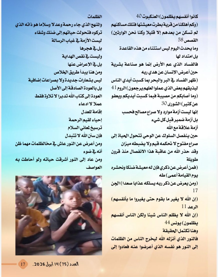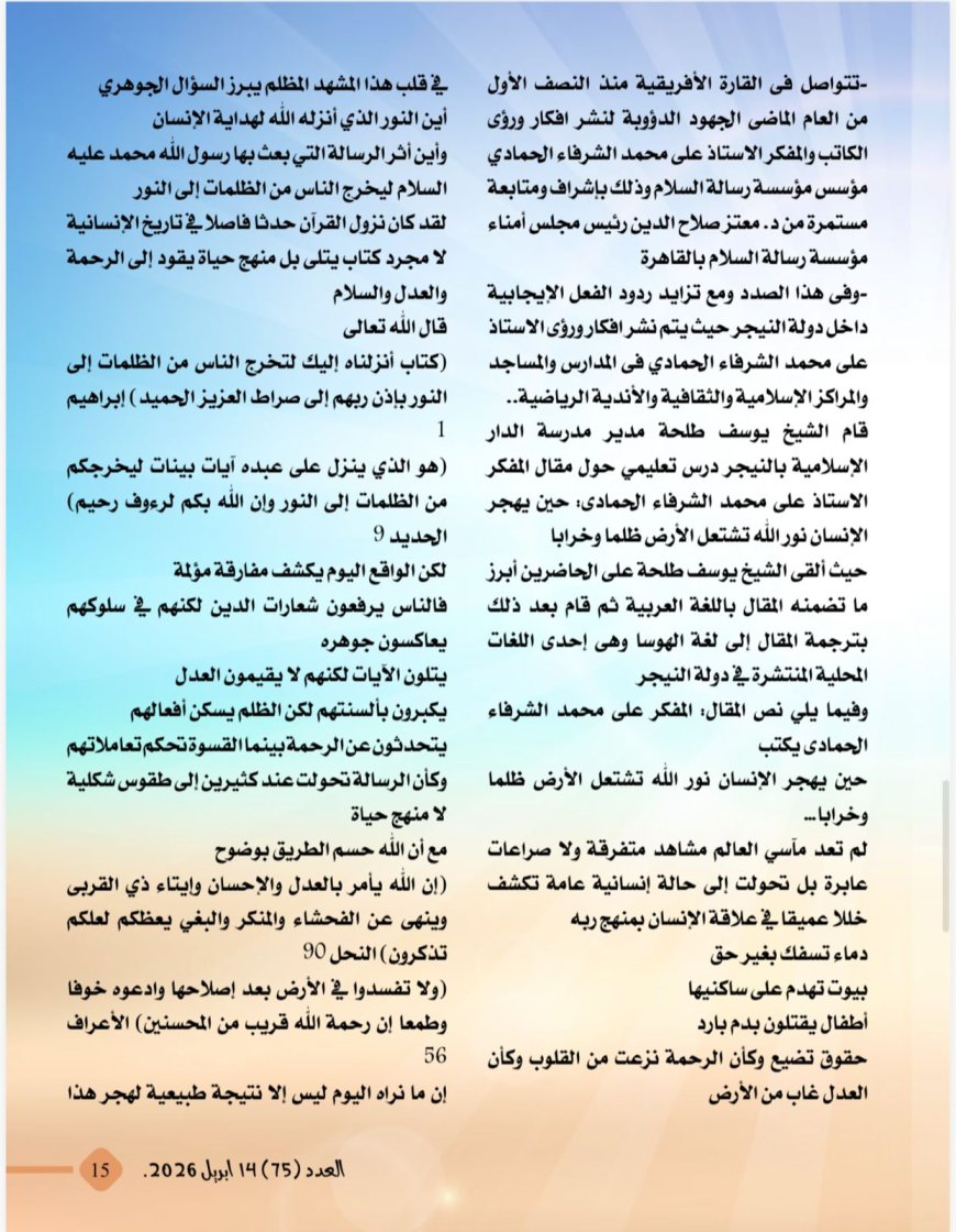 -درس تعليمي بالنيجر عن مقال المفكر على الشرفاء:حين يهجر الإنسان نور الله تشتعل الأرض ظلما وخرابا