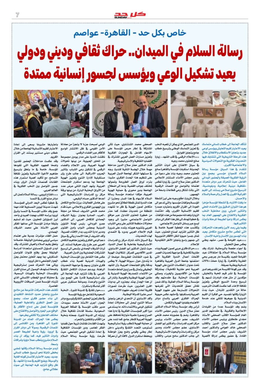 وفى العدد تغطية خاصة لنشاطات المؤسسة خلال الأسبوع الماضي بمختلف عواصم العالم