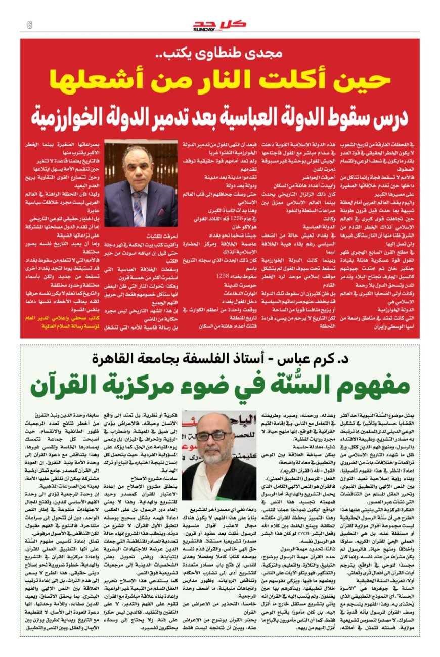 كما تضمن العدد مقال نوعي للمدير العام لمؤسسة رسالة السلام العالمية الكاتب الصحفي والإعلامي الأستاذ مجدي طنطاوي حول إنقسام الأمة الذي كتب مرثية العباسيين